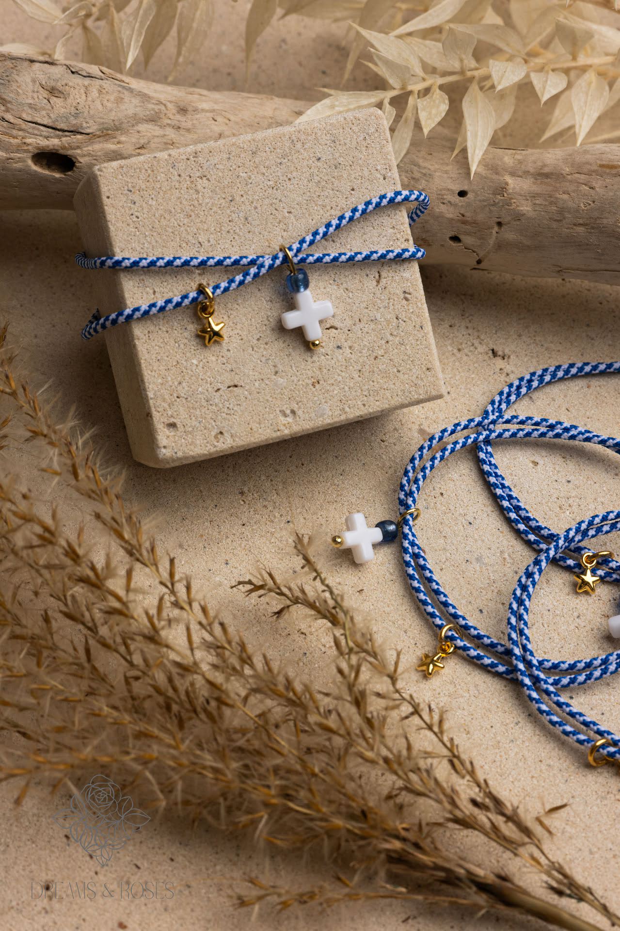 Μαρτυρικό βραχίολι με επίχρυσο αστέρι 24Κ και λευκό σταυρό σε σετ των 50τμχ.