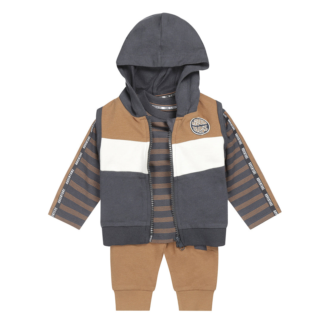 Βρεφικό σετ παντελόνι - μπλούζα με αμάνικη ζακέτα.
