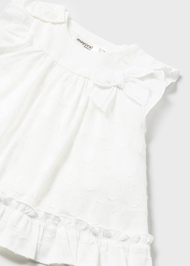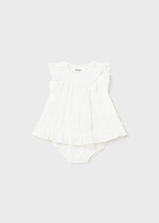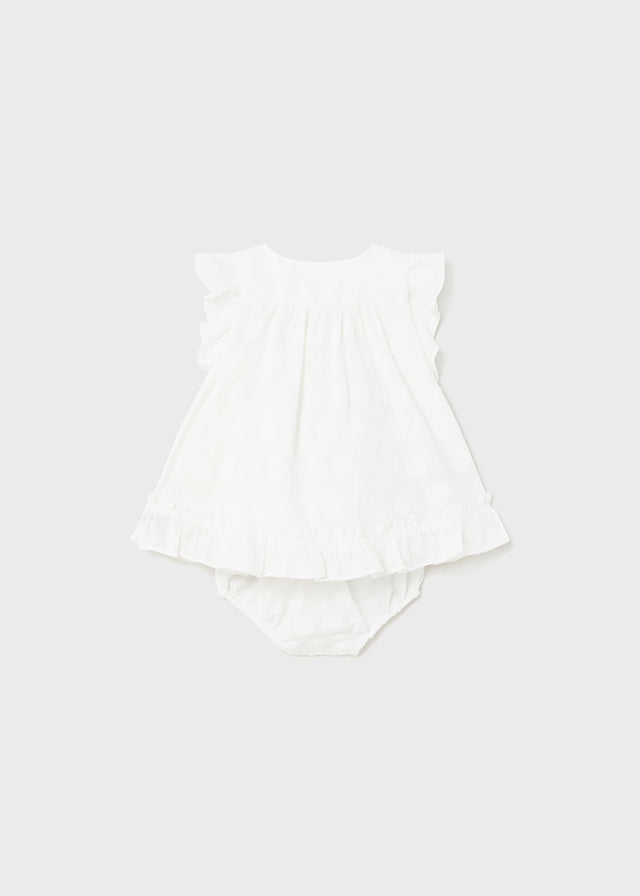 Mayoral παιδικό φόρεμα ζακάρ πουά σε λευκό χρώμα με εσώρουχο.