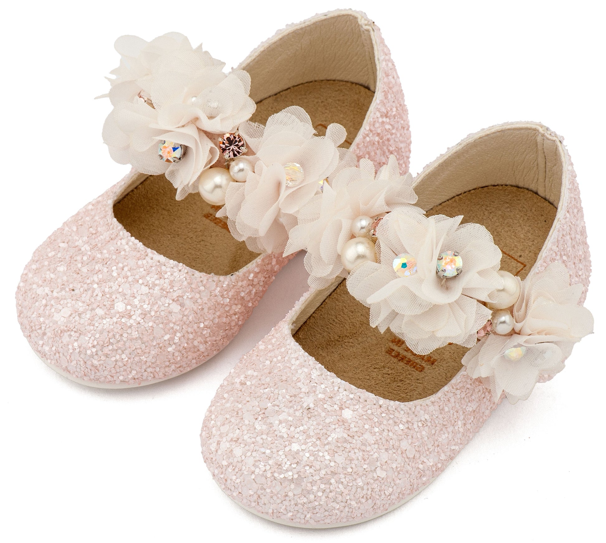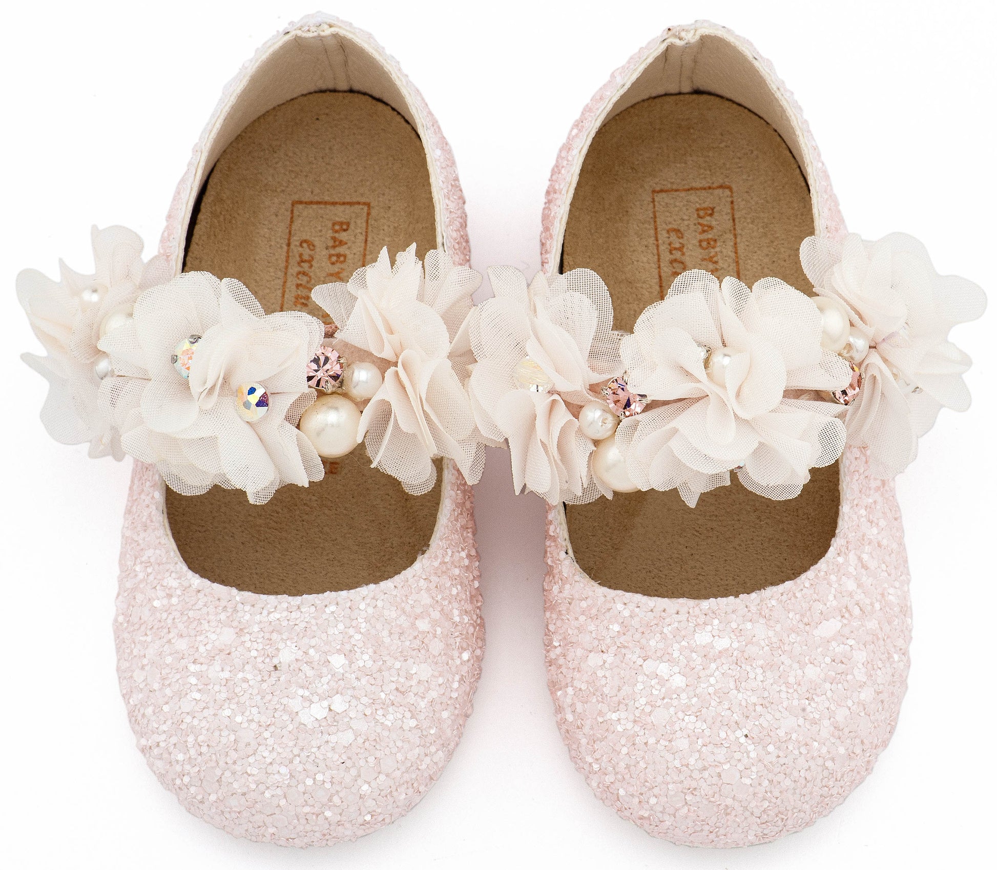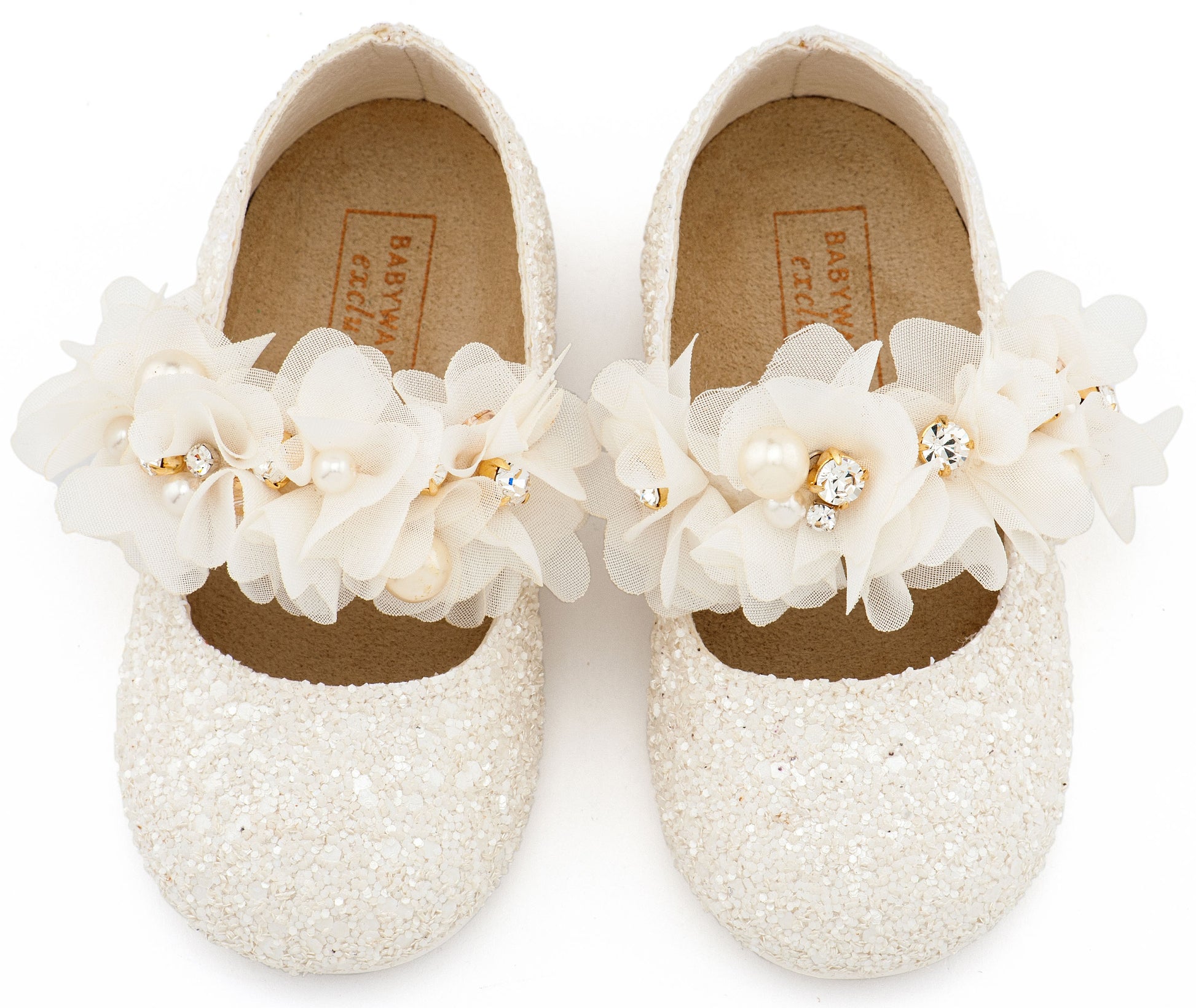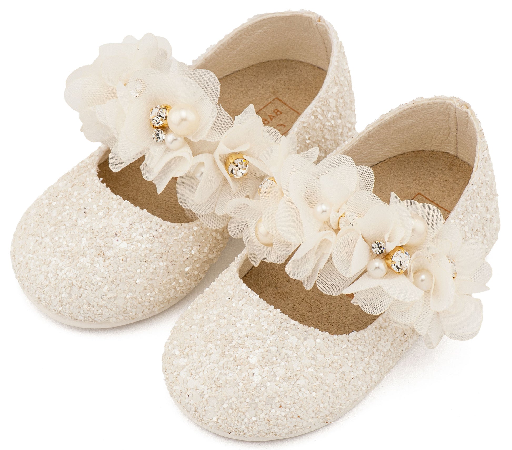 Babywalker Γοβάκι Μονή Μπαρέτα Στρας με Λουλούδια Πέρλες και Κρύσταλα Swarovski LU6118